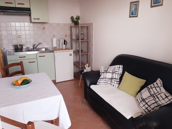 Well-equipped kitchenette with dining area gives you the freedom to eat when you want (basic cleaning products included)